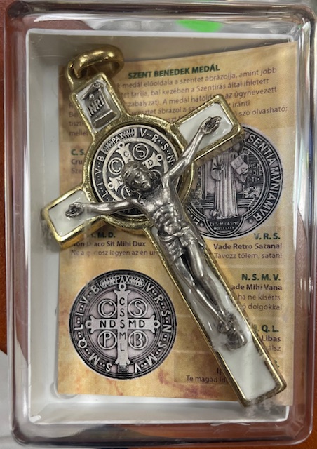 Fém Szent Benedek kereszt dobozban